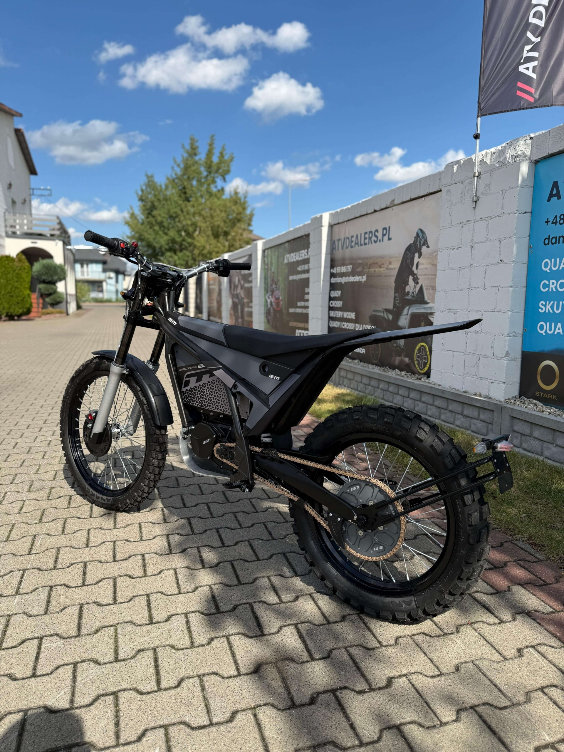 EM ESCAPE SE to elektryczny motocykl off-road, który łączy moment obrotowy 600 Nm, zasięg 61 km i wagę 82 kg z cichą pracą, idealny do jazdy w strefach ciszy. Z road legal ekwiwalentem 125 cm³, jest doskonały dla początkujących i miłośników natury. Odwiedź naszą stronę https://atvdealers.pl, aby dowiedzieć się więcej i skorzystać z oferty autoryzowanego dealera ELECTRIC MOTION! Oferujemy dowóz pod dom, pomoc w rejestracji, wsparcie w finansowaniu i profesjonalny serwis.