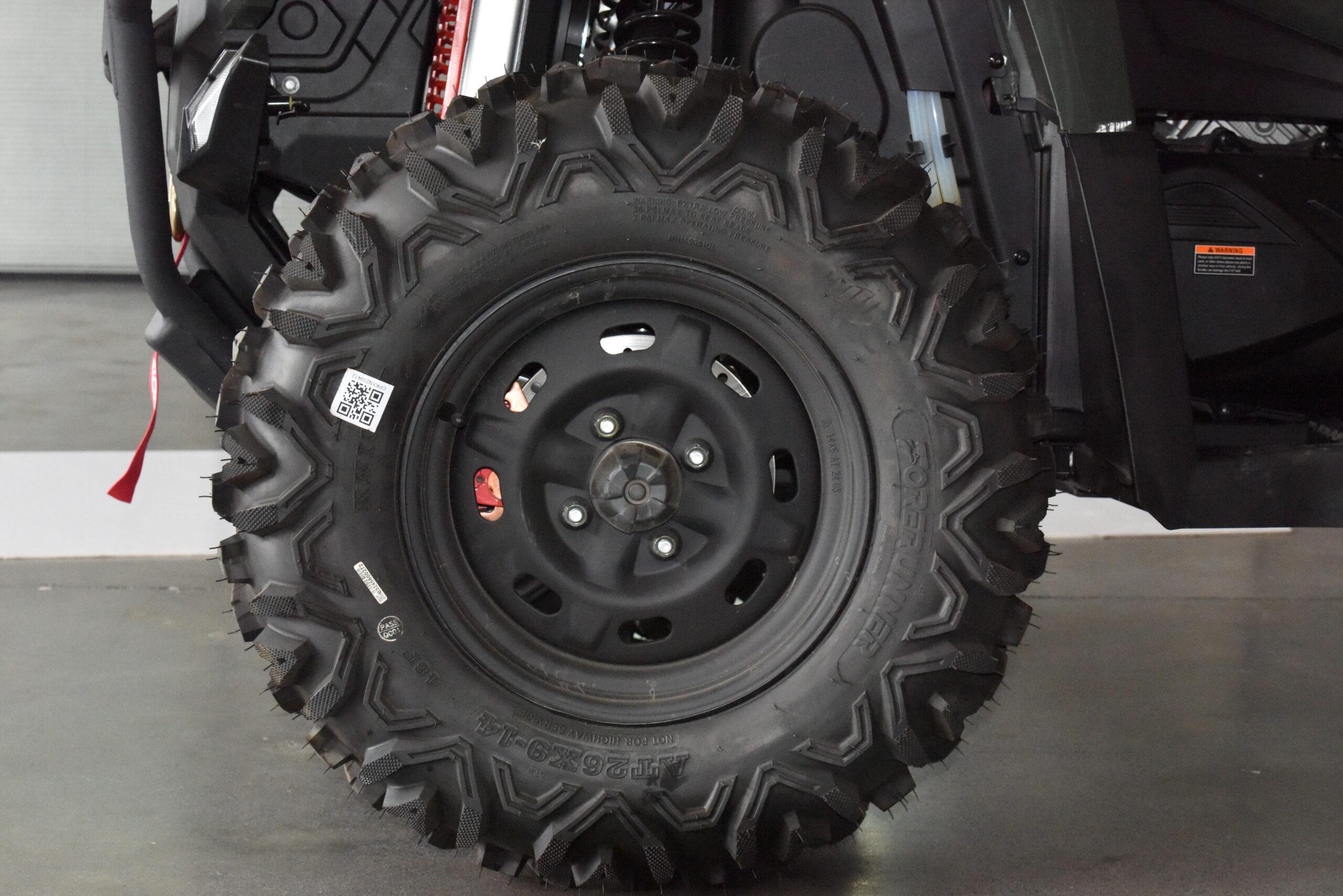 - 14-calowe felgi: Aluminiowe felgi z 26-calowymi oponami (przód 26×9-14, tył 26×11-14) zapewniają stabilność i przyczepność.
