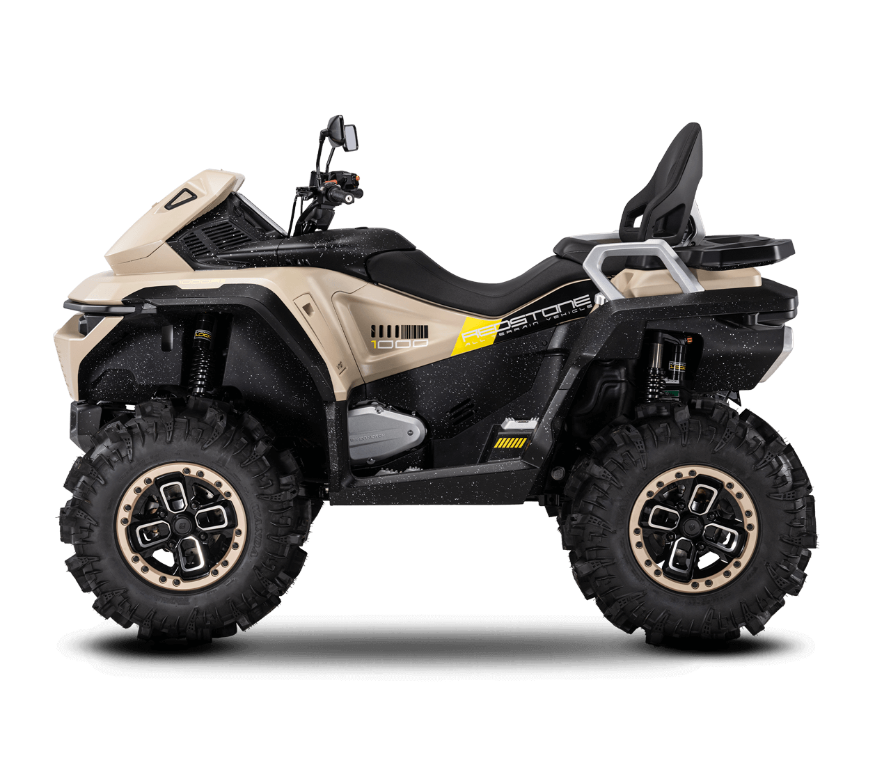 Sercem REDSTONE 1000 MUD jest czterosuwowy silnik V-Twin o pojemności 1000 cm³, generujący 102 KM mocy i 92 Nm momentu obrotowego. Zastosowano elektroniczny wtrysk paliwa (EFI) oraz system chłodzenia cieczą, który gwarantuje stabilną pracę jednostki napędowej nawet podczas długotrwałego obciążenia. Inteligentna przepustnica (Electronic Throttle) zapewnia szybkie reakcje na gaz i precyzyjne dozowanie mocy, co przekłada się na płynną i dynamiczną jazdę w każdym terenie.
