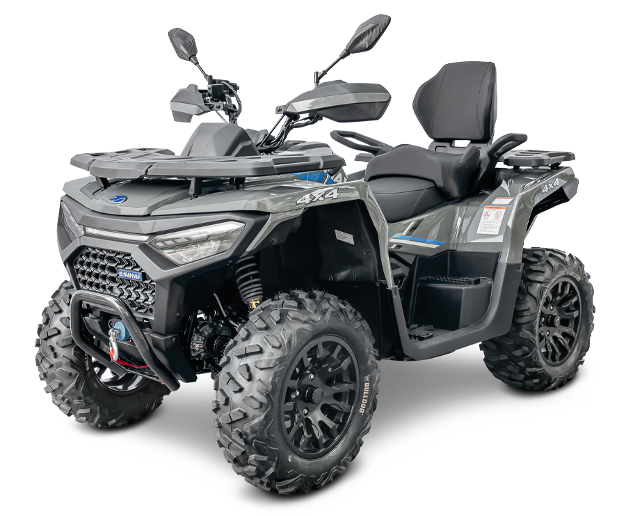 LINHAI LANDFORCE 650L EPS jest idealny do pracy i rekreacji, z wygodnymi siedzeniami antypoślizgowymi dla pasażera i podnóżkami. Wysoka nośność, hak holowniczy i gniazdo 12V/USB wspierają transport ładunków i narzędzi. Ergonomiczne siedzenia i zawieszenie zapewniają komfort na nierównych drogach, a nowoczesny design z dostępnymi kolorami (czarny/czarny, szary/czarny, pomarańczowy/czarny) dodaje stylu.