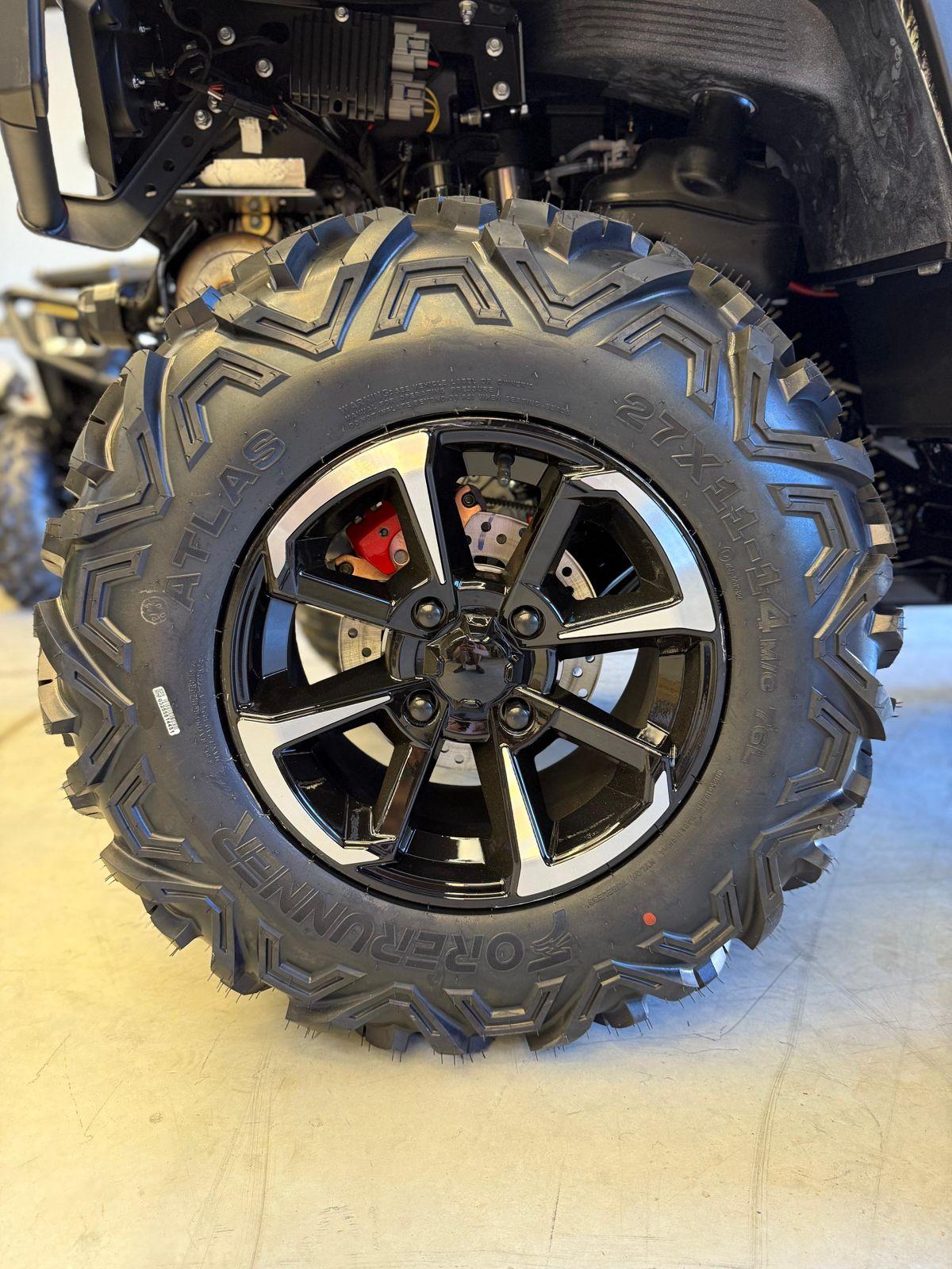 - 14-calowe felgi Beadlock: Wzmocnione aluminiowe felgi z systemem Beadlock i 26-calowe opony z głębokim bieżnikiem gwarantują przyczepność.