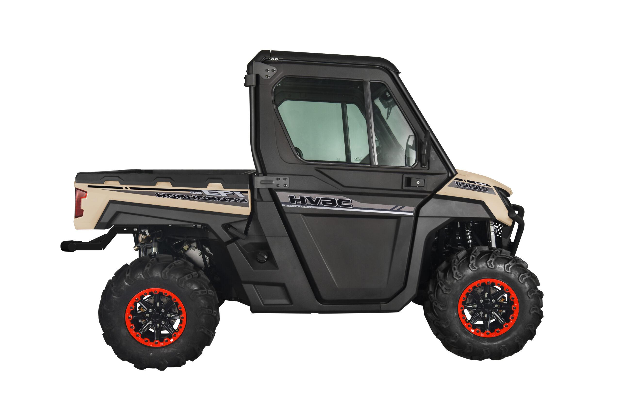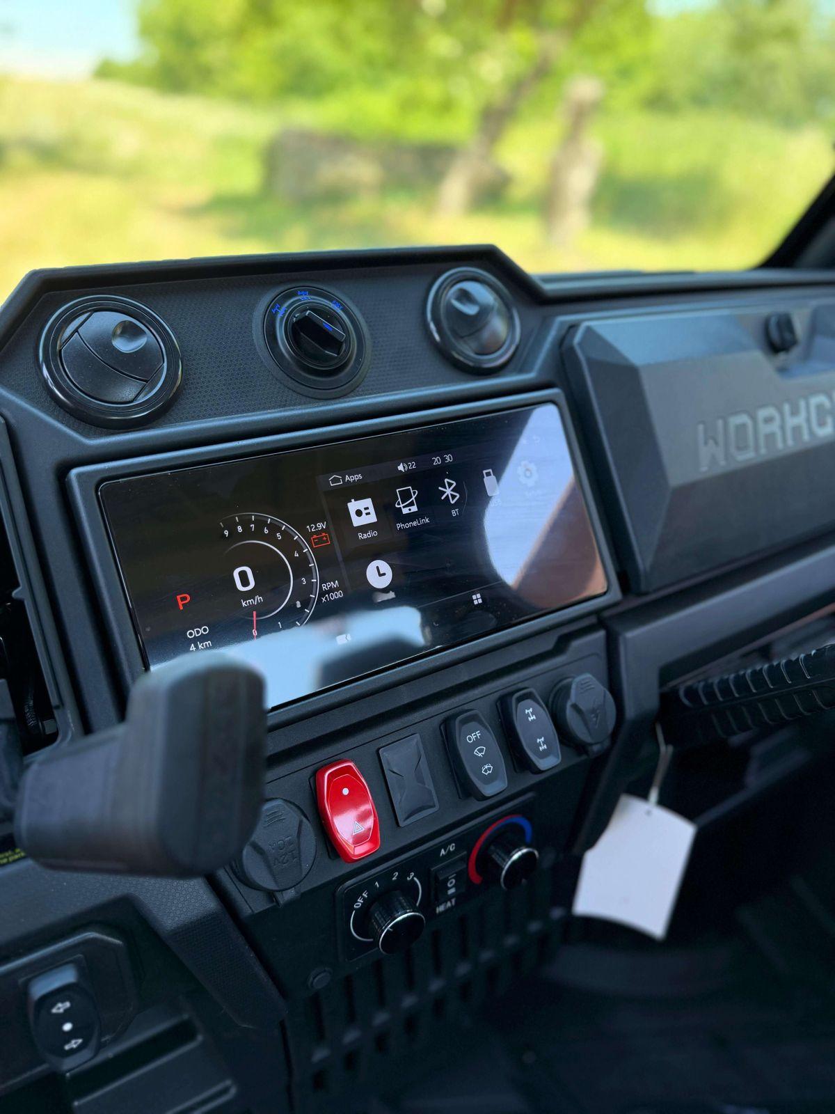 Workcross 1000-3 HVAC został zaprojektowany z myślą o trzech osobach, oferując przestronną kabinę z ergonomicznymi fotelami i regulowanym volantem. Wzmocniona rama z wysokowytrzymałej stali zapewnia trwałość, a niezależne zawieszenie z podwójnymi wahaczami A i gazowymi amortyzatorami YIT (18-stopniowa regulacja) gwarantuje doskonałą amortyzację na trudnych trasach. Prześwit 33 cm i 27-calowe opony Marsway na 14-calowych felgach Beadlock zapewniają przyczepność w błocie, piasku czy na kamienistych szlakach. Homologacja T3B umożliwia rejestrację i użytkowanie na drogach publicznych.